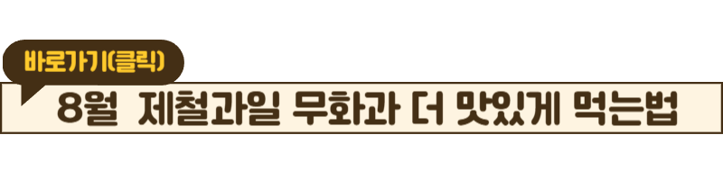 뜨거운 8월엔 포도와 무화과가 제철입니다. 포도는 다양한 품종으로 선택의 폭이 넓고, 무화과는 고급스러운 달콤함으로 디저트나 샐러드로 활용하기 좋아요.